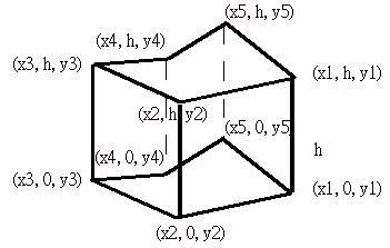 柱狀體將底面所有的頂點放置在XZ平面上,高度為h,則頂點座標配置如下所示: